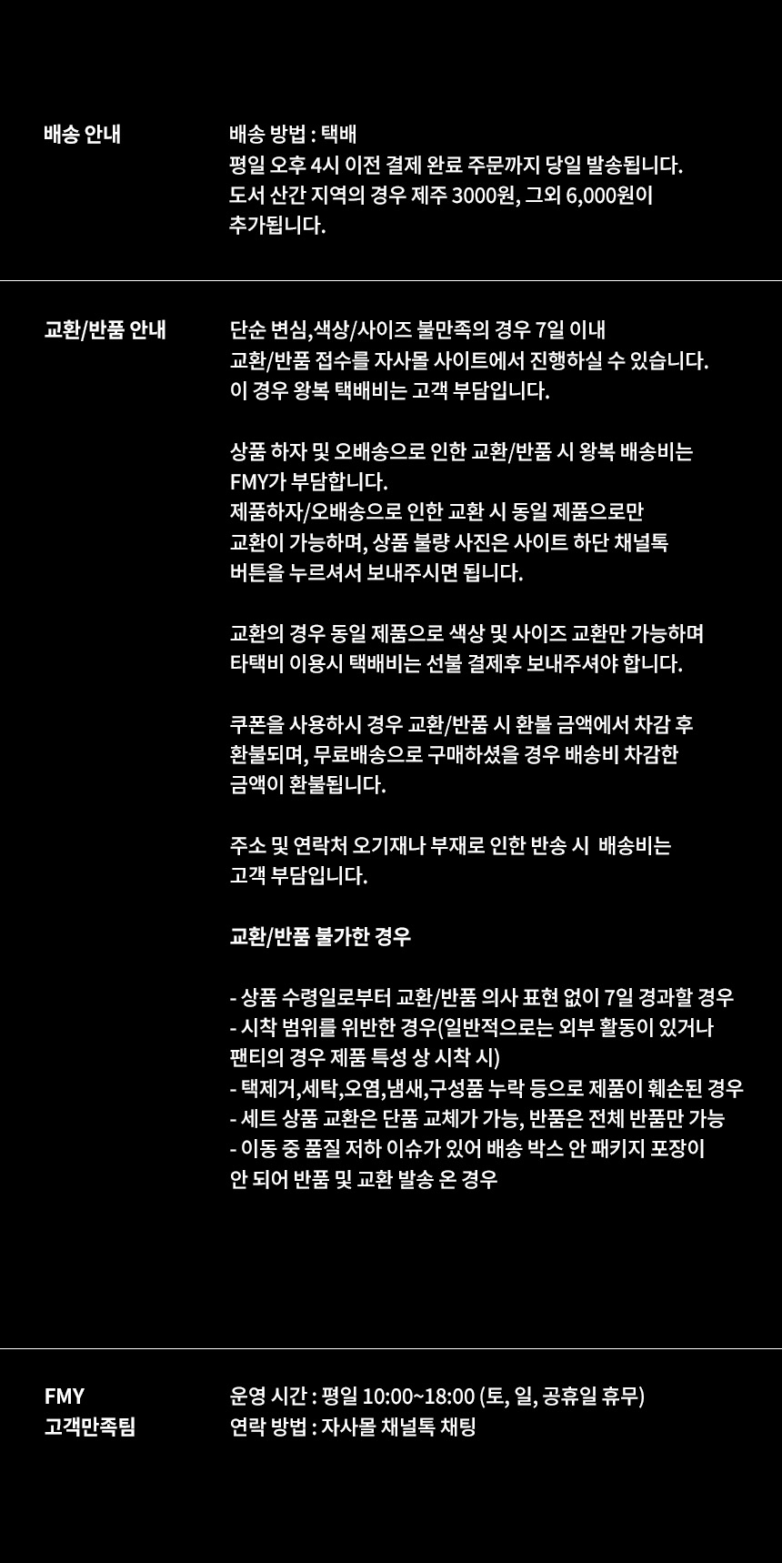 상품 상세 참조 및 택을 제거하지 않은 상품만 반품 및 교환이 가능합니다.
