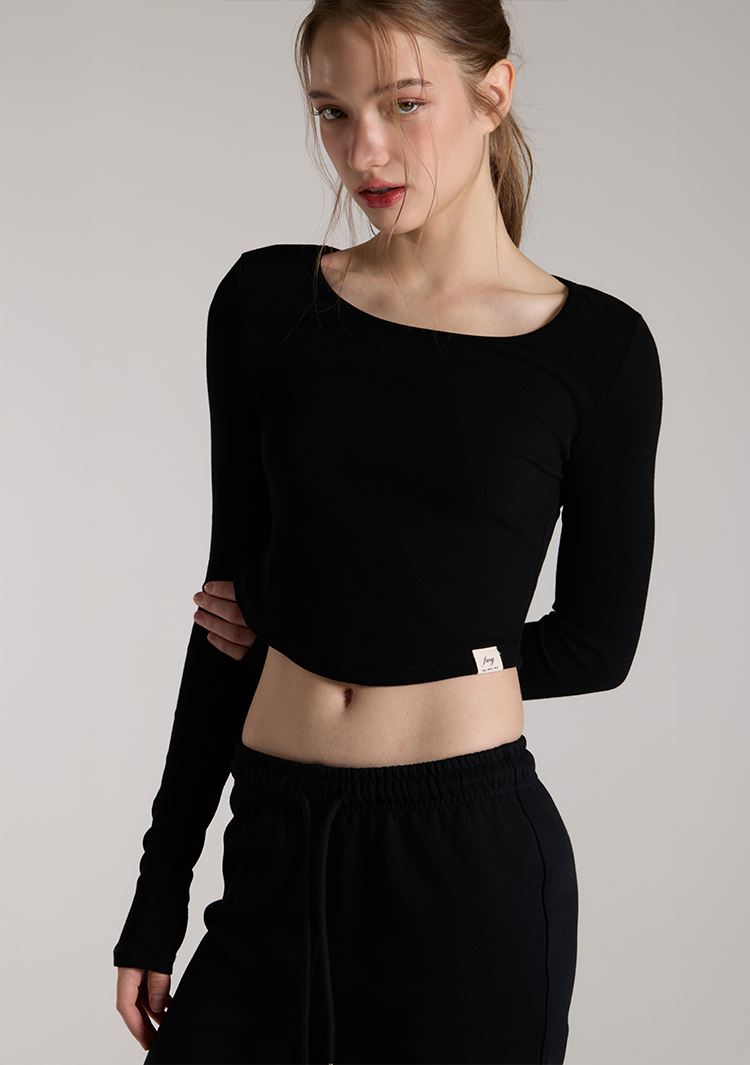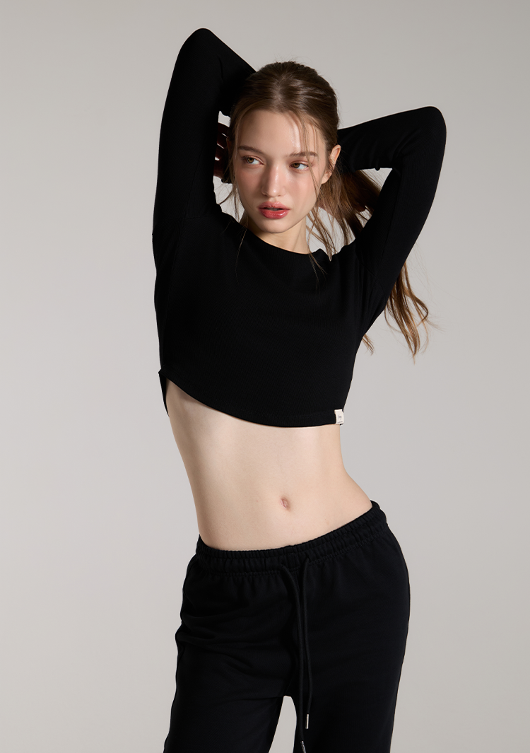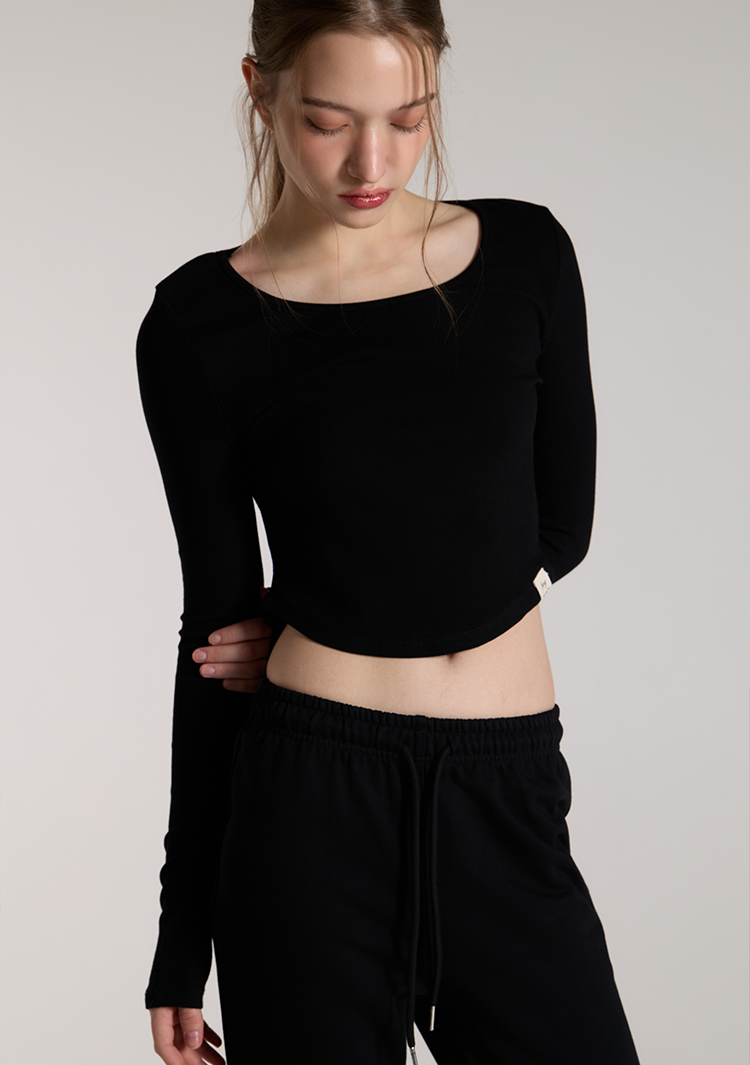 커브드 롱슬리브 탑 BLACK